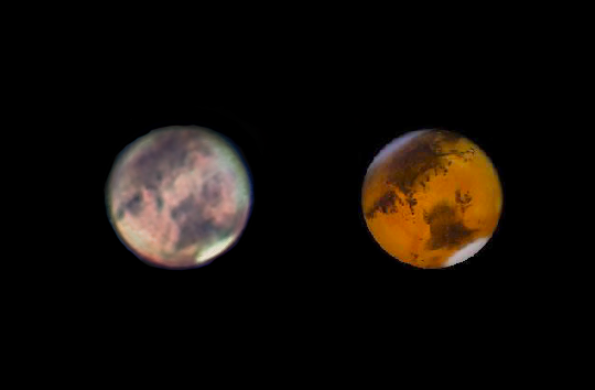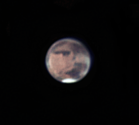 I was able to observe Mars this week end – after weeks and weeks of cloudy sky and rain. The seeing (between 4/10 and 5/10 on ALPO scale) was not as great as in November but I am still very pleased with the result I got in average seeing condition with my Orion Maksutov-Cassegrain 7″ – a mass production telescope I bought for less than $1,200 – and with my black and white Imaging source DMK camera.