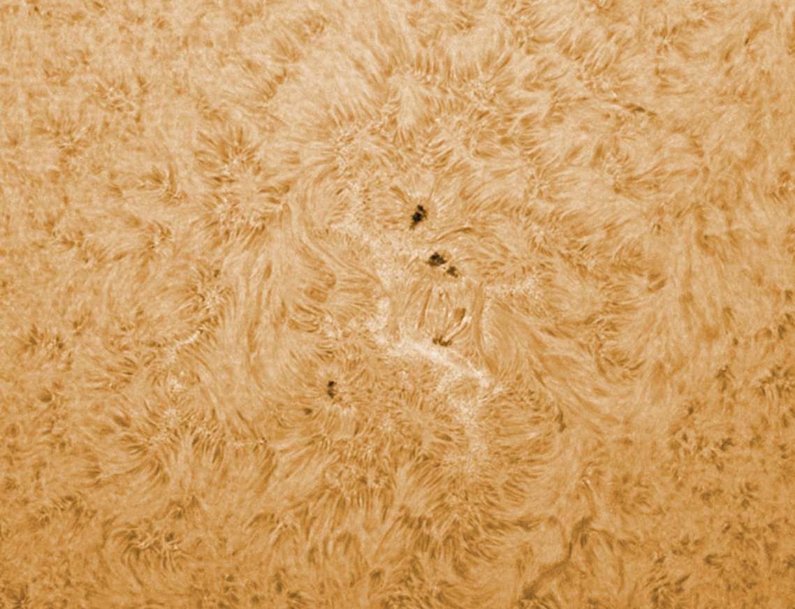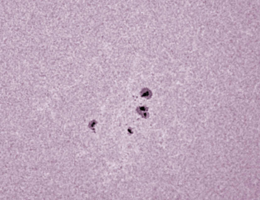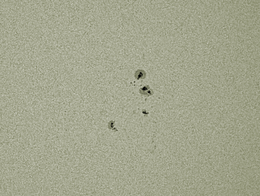 Even though the Herschel wedge gives very nice views – this specific sunspot group was not looking very impressive visually in white light. Solar granules are visible even though this is not a very high resolution image.