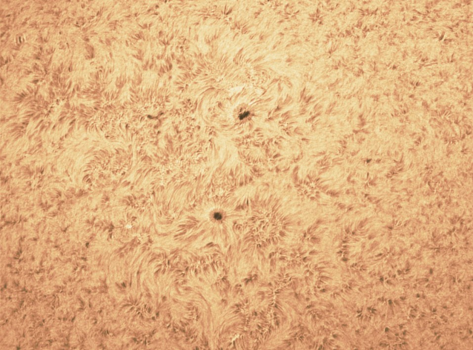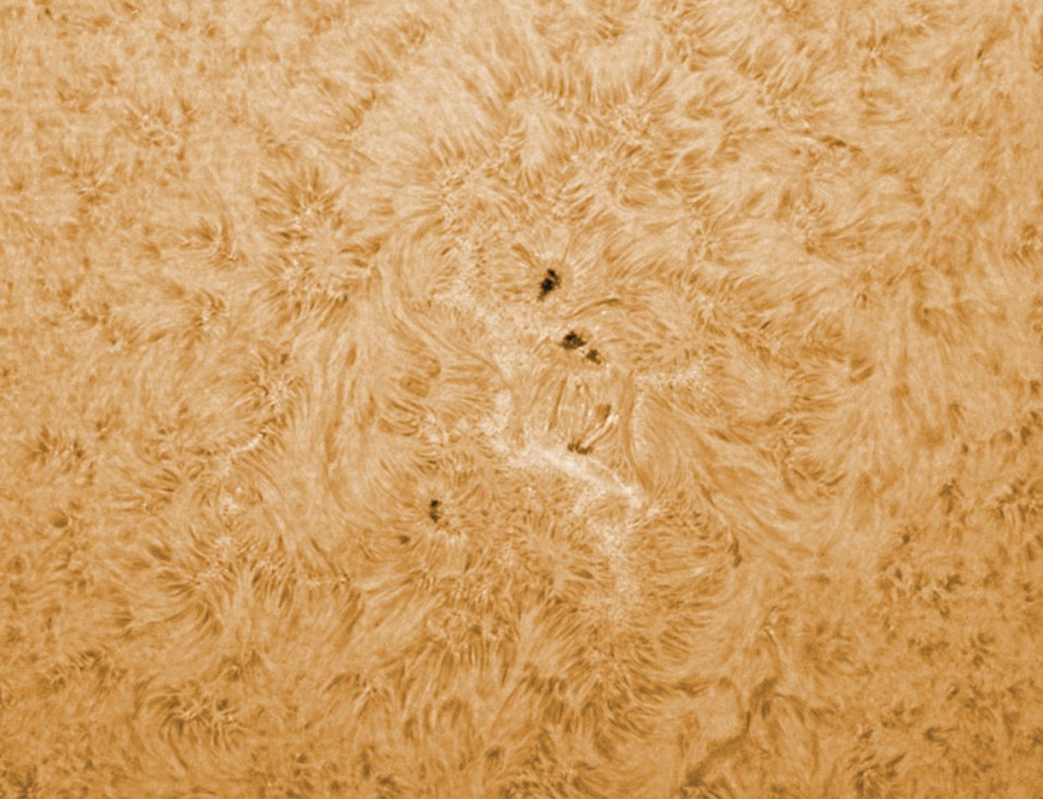 This is the Sunspot group AR 1271 in H-Alpha… I saw a flare close to the two top sunspots when observing visually. Once I set the camera and computer.. gone! This is too bad.