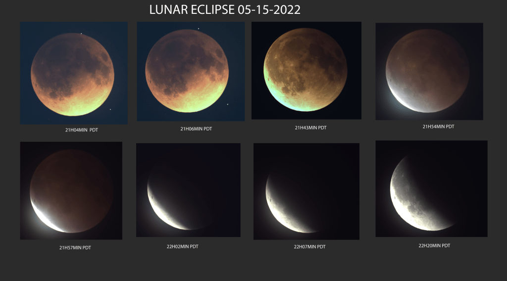 These pictures were taken from the Oaks Park in Pleasant Hill, CA. The weather was pretty bad (windy & Cloudy) but managed to take few pictures of the total moon eclipse.
