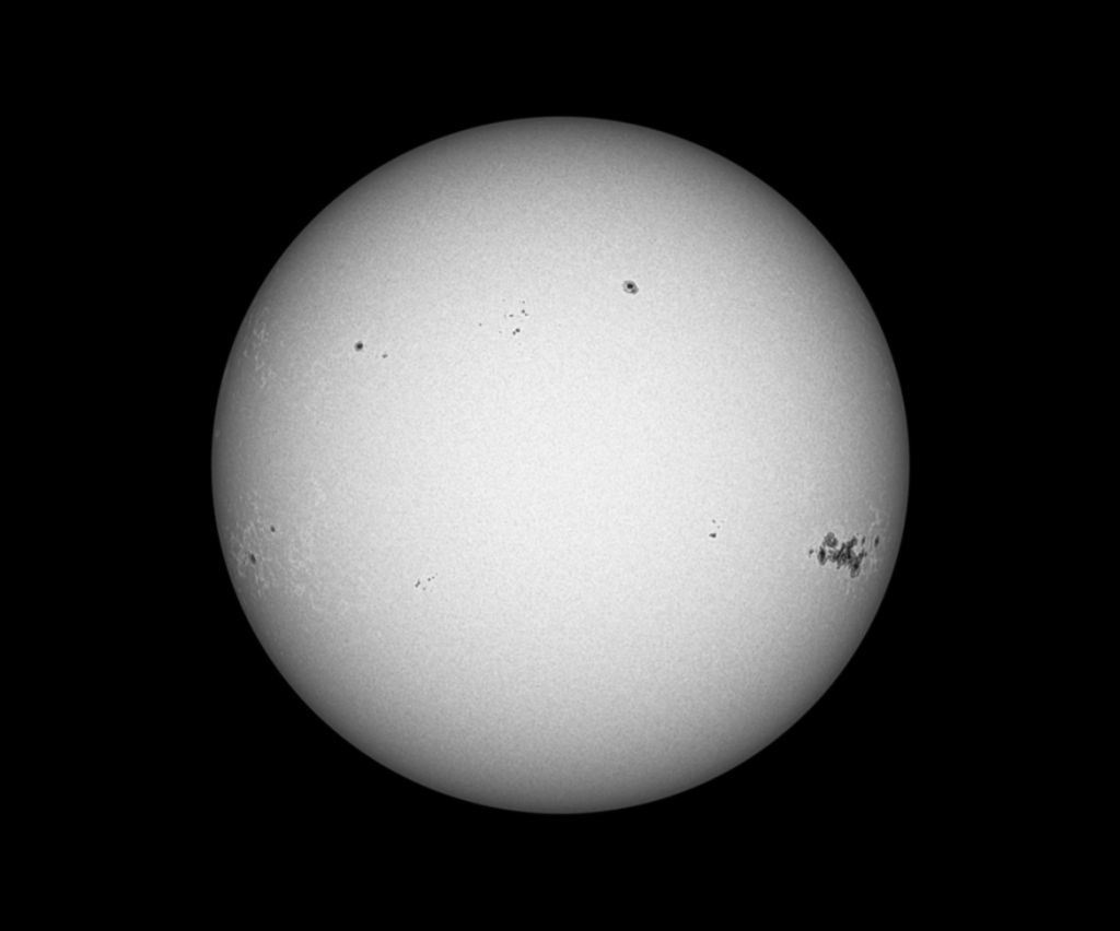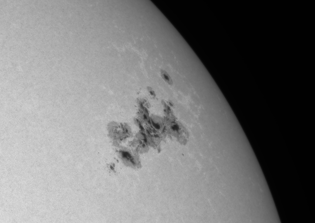 With the Sun activity almost at its maximum, the Solar spots are spectacular. The Sunspot group below (Region 3664 – CR 2884) is the same group on the bottom right in While Light.