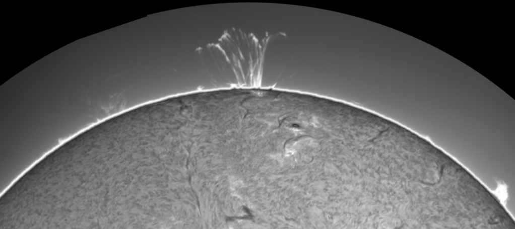 Below is a zoom on the large protuberance from the image taken with the William Optics 60mm refractor.